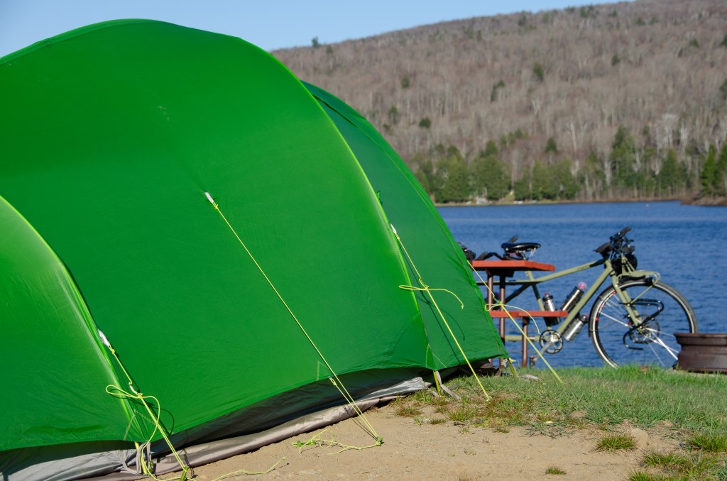 Une fois entrés au Vermont, nous nous arrêtons au premier village traversé, Richford, pour remplir faire des provisions. Et cela deviendra une routine presque quotidienne car nous ne nous ravitaillons pas en grandes quantités pour éviter d’avoir trop de poids à transporter. C’est que le Vermont n’est pas plat. Notre premier arrêt est à Eden où nous installons notre tente dans un camping encore semi-fermé mais la gérante, contactée auparavant nous autorise à y rester gratuitement. vient d’ailleurs nous rencontrer pour nous saluer et nous manifester son plaisir de participer à notre projet de tour du monde. Ce sera fréquent que des inconnus expriment leur joie à nous aider. Comme nos hôtes Warmshowers d’ailleurs qui nous ont accueillis pour une nuit en nous offrant le gîte et les repas. De belles expériences humaines qui nous permettent de rencontrer les gens vivant dans la région. À chaque fois on nous mentionne à quel point notre aventure est inspirante.