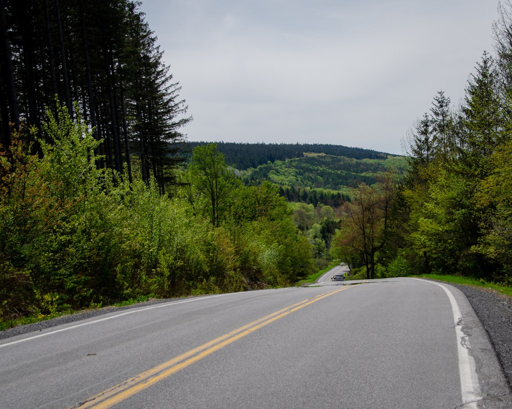 The first half of the state from Albany to Oneonta was challenging for us. We planned the itinerary in order to ride close to as many State Parks as possible as stealth camping is allowed in those parks. But we quickly discovered that those State Parks are mainly located on hilltops and that they are not easily accessible on bicycles, especially when having to push 55 kg of luggage. We ended up making too much ascent than necessary and to find camping spots besides the road on private backyards. Roads are very steep in that part of the state which forced us to get off the bike and to push it as the percentage were too important.