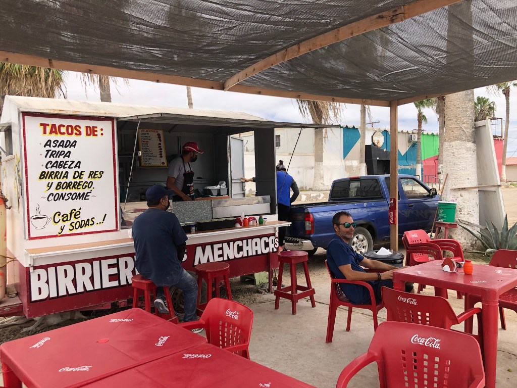 After leaving our San Diego Warmshowers host, we rode a few miles to the border which we crossed without too much trouble other than finding ourselves crossing with the cars, which was apparently not allowed since the border guard was not really happy with us. Then we quickly crossed the border town of Tijuana without lingering there because the unfortunate one has a very bad reputation. The chaos that seems to exist there compared to the quiet calm of San Diego was a first shock for us. The heavy traffic, the loud and smelly exhaust pipes, the street vendors and their kiosks of all kinds and the suddenly changing language all added to our stress of entering a new country. Leaving the city, we take road number 1 which goes from the north to the south of the peninsula and which, too, has a very bad reputation  for cyclists but which turns out not to be as terrible as what we were told. Except in rare places, there is almost always a wide shoulder and what about truck drivers who are the upmost courteous with us. We never felt in danger on the road.