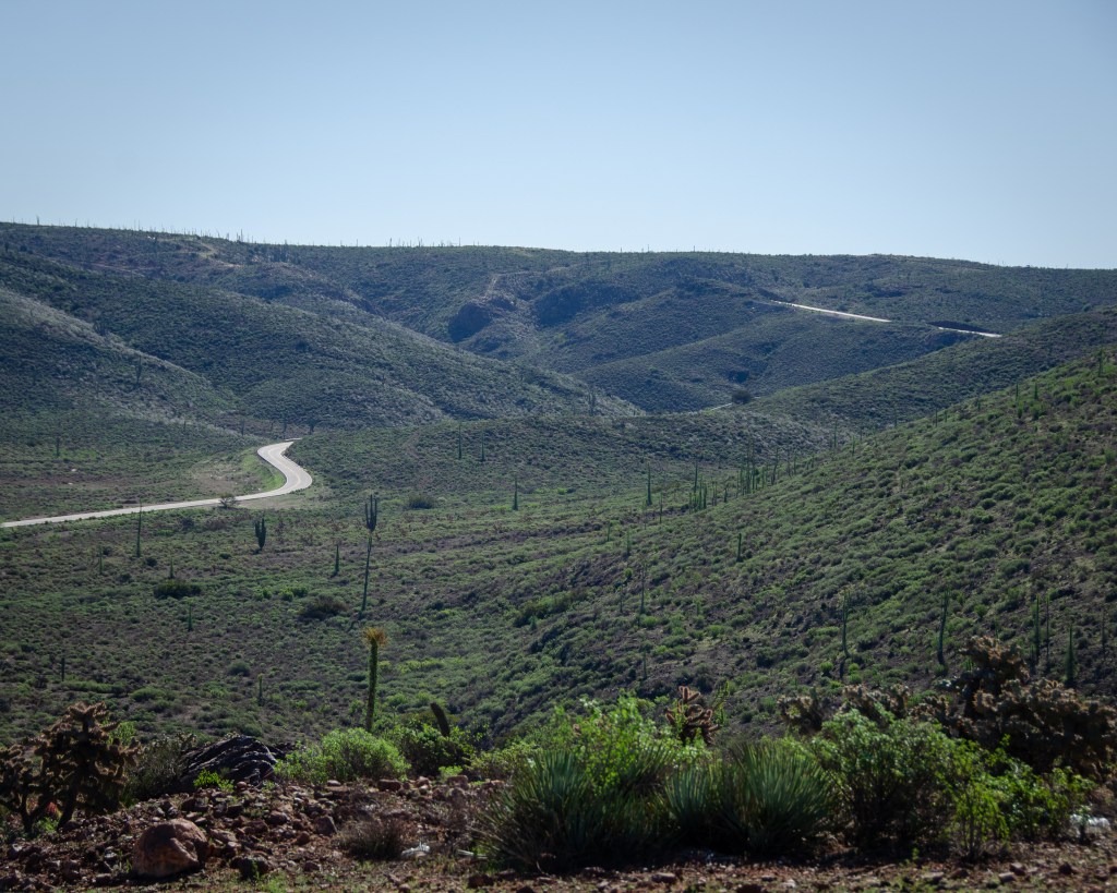 🇫🇷 Après la Californie; la Basse Californie: une péninsule qui s’étend sur plus de 1500 km au sud de la Californie, bordée à l’ouest par le Pacifique et à l’Est par la mer de Cortez et qui représentait pour nous notre premier contact avec le Mexique. Notre objectif était de rejoindre La Paz d’où nous devions prendre le traversier qui nous ramènerait sur le continent où nous allions poursuivre notre route. Au départ, la Basse-Californie n’était pas sur notre itinéraire mais  comme il s’agit de la région la plus sécuritaire dans le nord du Mexique, presque la totalité de voyageurs comme nous traversent la frontière à cet endroit.